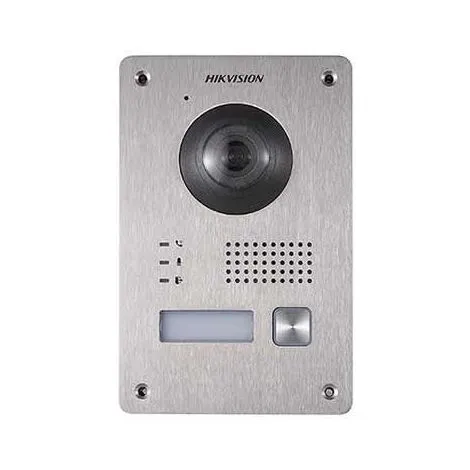 1 portier vidéo couleur IP 2 fils de 2 Mpx @ 1080p en métal étanche avec caméra fisheye de 2,1 mm (155 °). Microphone et haut-parleurs intégrés. Protégé contre la falsification – sku. DS-KV8103-IME2