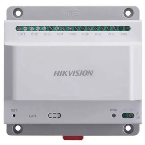 Switch IP 2 fils pour portier vidéo – DS-KAD709 – Hikvision Le switch IP à 2 fils DS-KAD709 est un distributeur pour portier vidéo de même type. Il permet de connecter plusieurs modules Hikvision à deux fils. Il peut prendre en charge jusqu’à 9 stations d’intérieur. En se servant de l’application mobile Hik-Connect App, il peut être accessible à distance à l’aide d’un Smartphone. Ce module dispose d’une interface réseau autoadaptative 10/100M pour prendre en charge les commutateurs externes. Il sert à la fois de source d’alimentation et de support de communication pour le transfert de données entre la station de porte et la station intérieure. Ce distributeur permet l’intégration d’autres modules à deux fils dans un système de portier. La distance de transmission via un câble 18 AG/17 WAG, est de 100 mètres au maximum. L’interface réseau est une prise RJ45 10/100 Mbps Ethernet qui permet de connecter le dispositif au réseau. Les protocoles réseau sont RTSP et TCP/IP. Ce switch dispose d’un port LAN. Il est alimenté par une source de courant de 24 V DC. La consommation maximale est de 60 W. Le module fonctionne correctement dans un environnement présentant une température de -10 °C à + 55 °C et avec un taux d’humidité relative de 10 % à 90 %. Pesant à peine 0,2 kg, le distributeur mesure 112,2 mm x 111 mm x 66 mm. Il est conçu pour un montage sur rail DIN. Principales caractéristiques du produit : Type d’accessoire : Distributeur audio vidéo IP/2 fils Nombre de ports : 9 Ports LAN : 1 Interface réseau : 1x RJ-45 10/100 Mbps Ethernet Protocoles réseau : RTSP, TCP/IP Connexion à distance : via l’application mobile Consommation : 60 W Alimentation : 24 V DC Température de fonctionnement : -10 à 55 °C Humidité max. de fonctionnement : 90 % Montage en rack 19 : Non Poids : 0,2 kg Dimensions (H x L x P) (mm) : 111 x 112.2 x 66 Installation sur rail DIN : oui